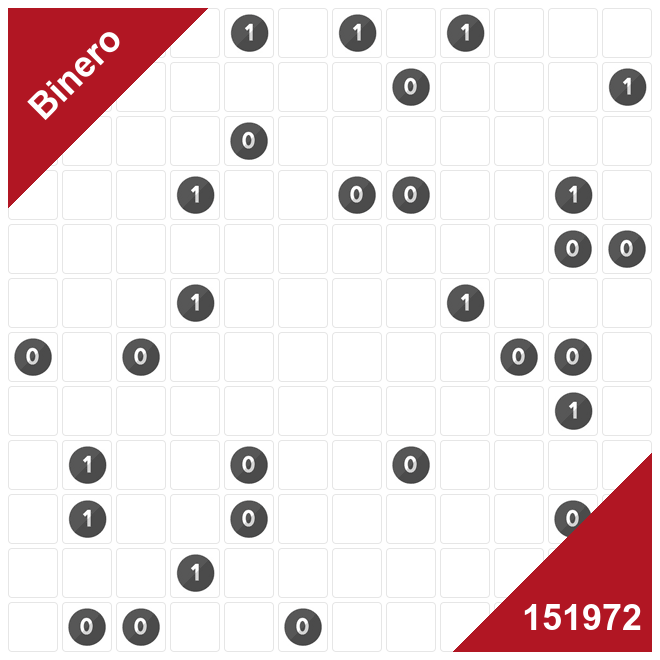• Chaque ligne et colonne contient autant de 0 que de 1.